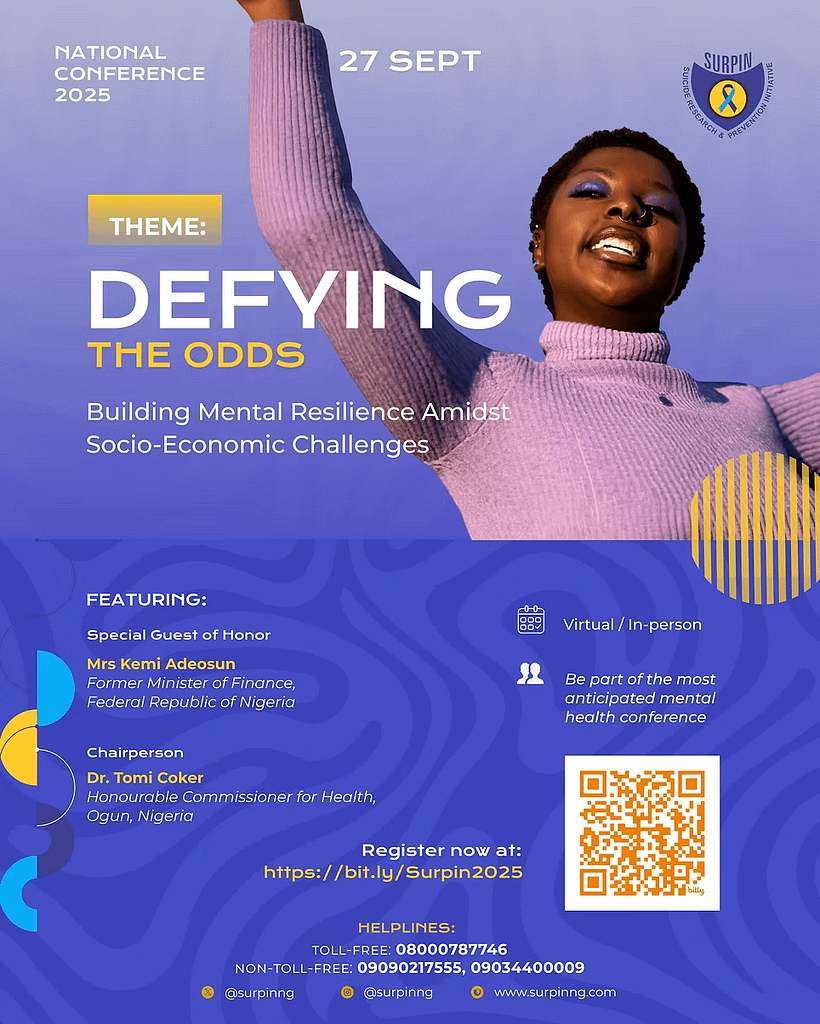 To mark World Suicide Prevention Day, SURPIN will hold a hybrid national conference on Saturday, 27th September 2025, with the theme “Changing the Narrative” as its main focus. The sub-theme is “Defying the odds: Mental Resilience Amidst Socio-economic Challenges.”